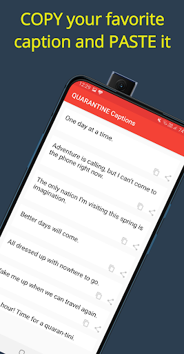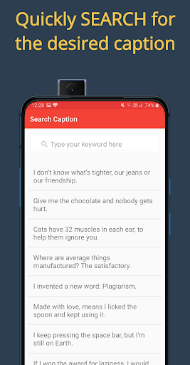 The app also has search functionality through which you can easily filter your captions. In the latest scenario of the virus spreading all over the world, the app has certain Quarantine and Social Distancing Captions.