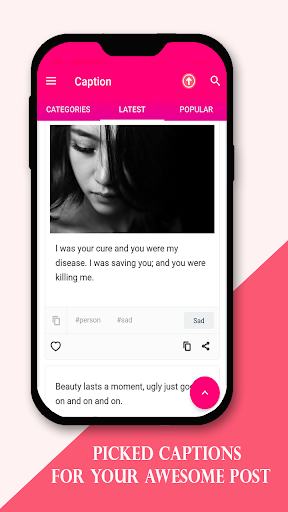Large collection of captions for Insta and fb, status caption for FB photos, Insta Quotes caption. Quotes and caption for photos of any social media, just copy your favorite caption and use in your Insta & FB picture or photo. Download the app right now to dive into an ocean of best captions for Insta for your next Insta photos.