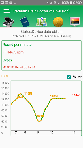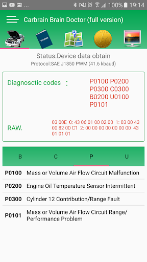 1. Application makes connection with car OBD adapter via bluetooth and displays received car diagnostics information.