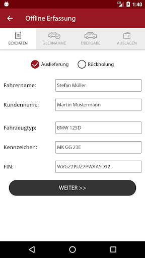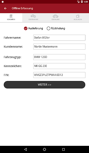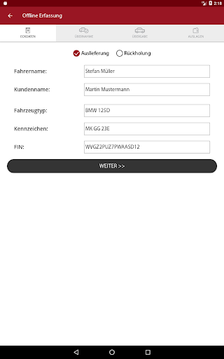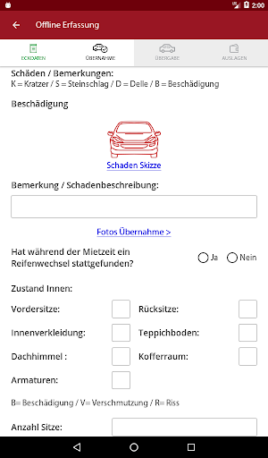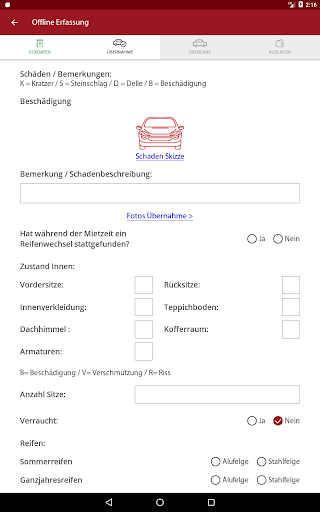 - Übernahme mit Aufzeichnung des Fahrzeugzubehörs, Funktionscheck, Bildern und Unterschriftsaufzeichung