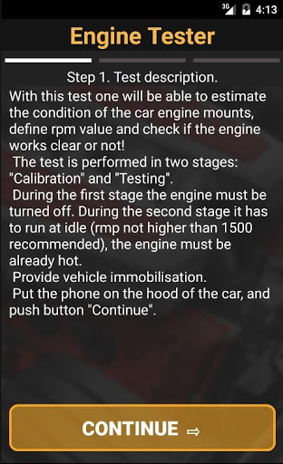 Engine Tester application allows to make engine vibration diagnostics using just modern phone. No any additional devices needed! In particular, implemented analysis algorithms help to estimate the state of car engine mounts. The state of the engine mounts directly determines the noise and vibration level in the vehicle.
