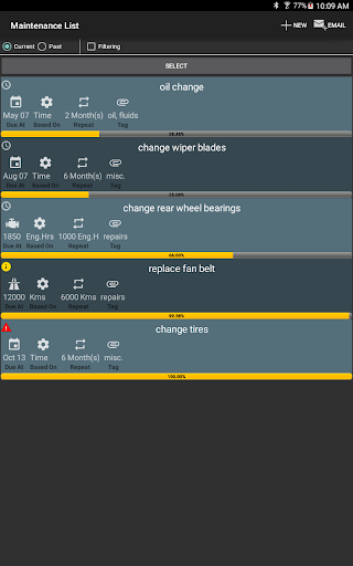 9) it allows to define cyclical maintenance operations; when the operation is executed automatically a new entry is created with the same parameters as before but with a new due date / due odometer / due engine hours
