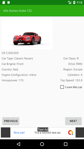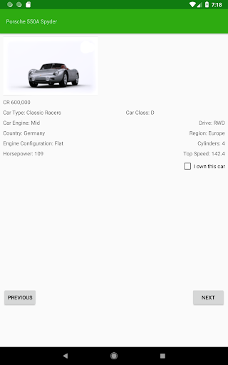 Car Tracker supports importing and exporting of owned car lists to allow for multiple Forza accounts or to transfer your data between Android devices.