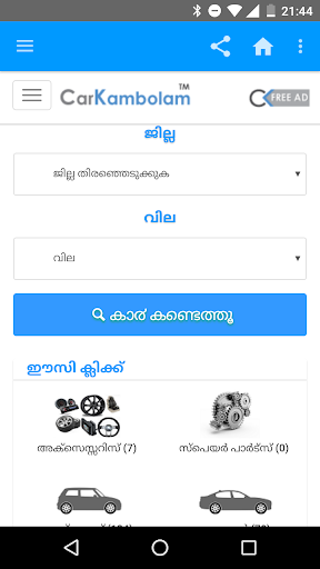 CarKambolam.com is a 100% digital business venturing to be the best digital automotive marketplace for Passenger segment vehicles, Accessories and Parts exclusively for Kerala. CarKambolam.com’s primary activity is to help new and used vehicle retailers and individuals trade effectively in the marketplace in order to sell their vehicles faster. The marketplace envisage to bring together the largest and most engaged consumer audience, with the largest pool of vehicle sellers. CarKambolam.com does not buy or sell any vehicles itself. First time ever in Kerala we offer dedicated features to sell and buy New and used car Accessories and Parts.Dedicated web page for all dealers registering.