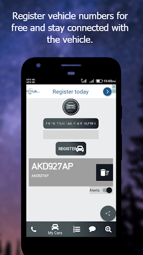 - Add a car number plate in the 'my cars' section and you will always be alerted about events related to the vehicle.