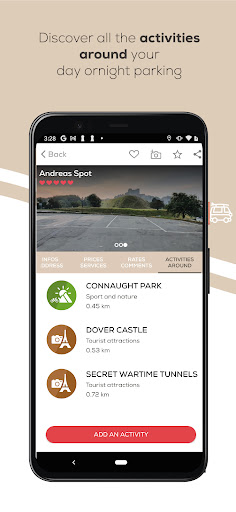 SEARCH for a campsite, a service area around your position or at your destination and find the stage to park your motorhome during a trip.