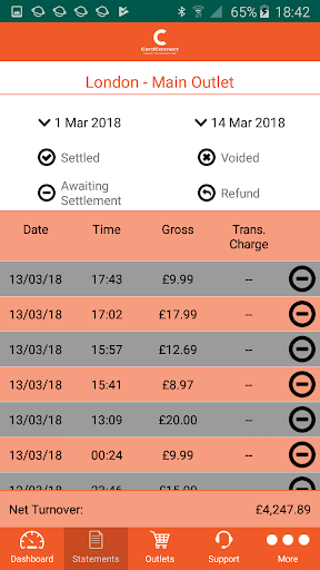 The App enables you to monitor your card transactions in real-time. It gives detailed information on transactions that are pending and have paid to your bank account so you are fully up to date as to when your payments will arrive.