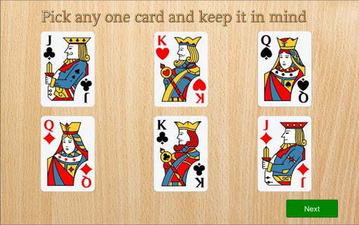 Impress your friends and family with unique magic trick. There are six cards to choose from. Ask your friend to choose any one of them and keep it secret. Also ask him to remember the card. On the next screen that card will be vanished. How'd the app know about their secret card. That's magic.