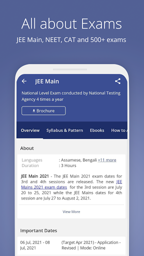 ● Get details like exam patterns, important dates, applications, admit card, answer keys, result, counselling, etc.