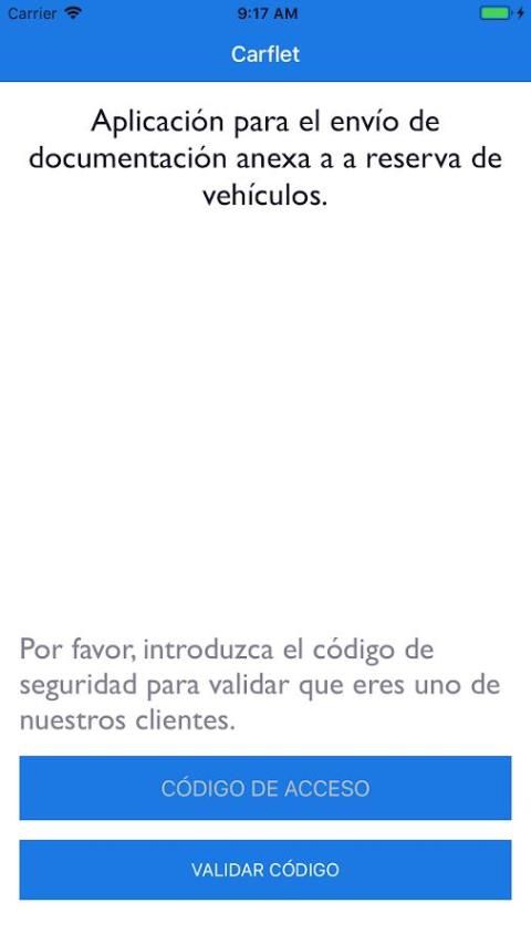 Primera versión de la aplicación Carflet Rent a Car.