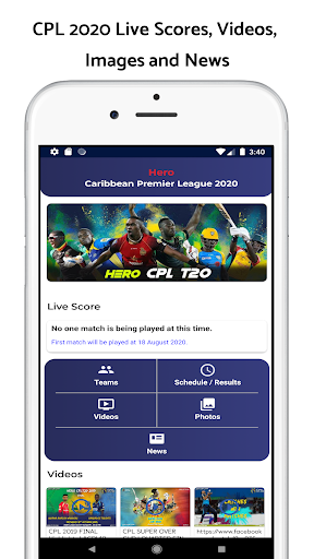 This app includes Teams List of Caribbean Premier League, Schedule of complete Caribbean Premier League, Live Scores, Images, Videos and News of Caribbean.