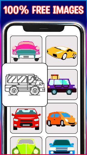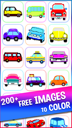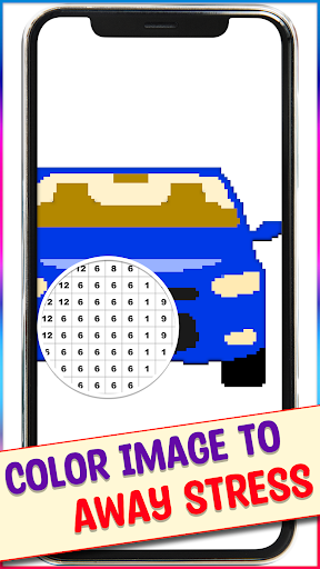 Create masterpieces by your own hands and relieve your stress level. It's so easy to color any vehicle with the help of number boxes. Cars pixel art color by number has many car coloring pages like sports cars, modern cars, and vintage classic retro cars. It is designed for all creative souls who adore cars and help you to relax by coloring the latest sandbox car models.