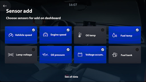 View life data of your vihecle - charging and coolant sistems, see on dashboard all trouble codes when your Check Engine flash. You can also perform diagnostic all engines systems like: