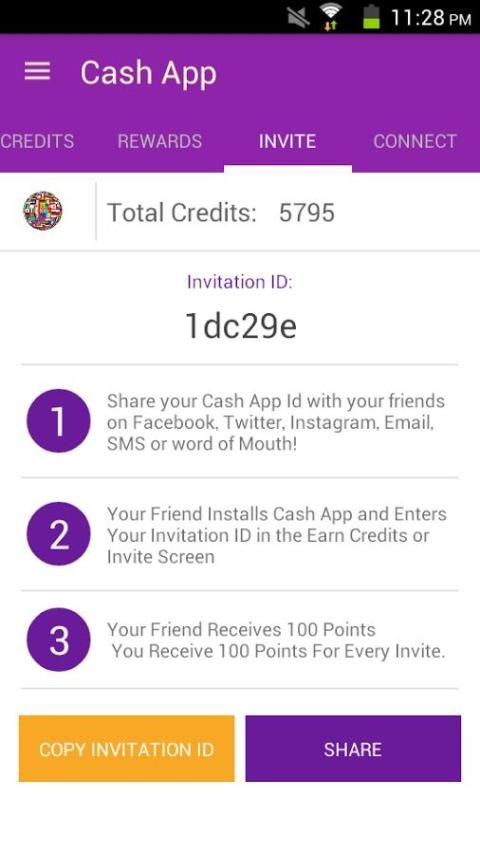 Invite your friends to Cash app to get an additional 100 credits, you can invite an unlimited number of people and you get 100 credits each and every time! Ask them to input your invitation code so they can get 100 credits too!
