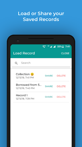 * Share records with friends on WhatsApp, e-mail etc.