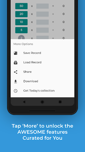 Cash Calculator : Is the most simple solution to your money counting problem. Now Calculate all the cash you have, in individual denominations and save it as .csv file or screenshot it.