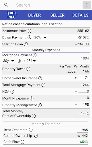Type any U.S. address and get an Instant Estimated Cash Flow to help you decide if the property is worth buying or selling. Other Calculators may give you a Cash Flow only after typing in all of the information for a Property. With Cash Flow Calculator, type in the address of interest and the rest of the information will automatically populate!
