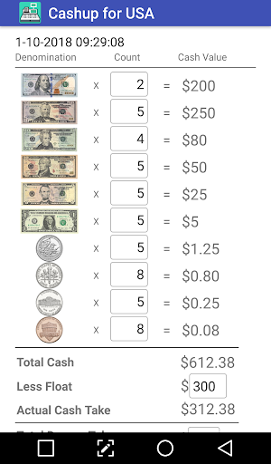 Cash up, Close a shop, Finish a shop, Calculate money, Calculation money.