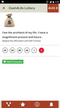 Daily you will receive one Affirmation along with the Cash4Life number for the day, which will be unique to you.
