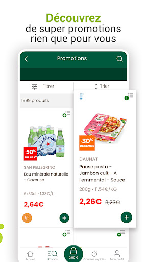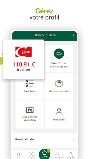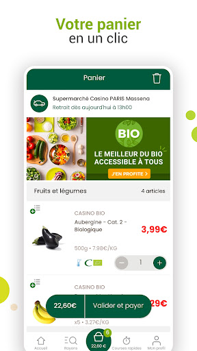 Retrouvez tous les produits des Hypermarchés et Supermarchés de l’enseigne Casino dans une seule et même application et passez commande facilement depuis votre smartphone ou votre tablette. Optez pour la livraison à domicile ou venez récupérer votre commande en magasin ou en libre-service 24/7. En plus, profitez de plein d'avantages : promotions, bons de réduction, cagnottage...