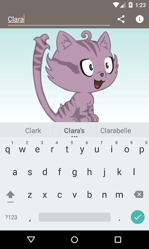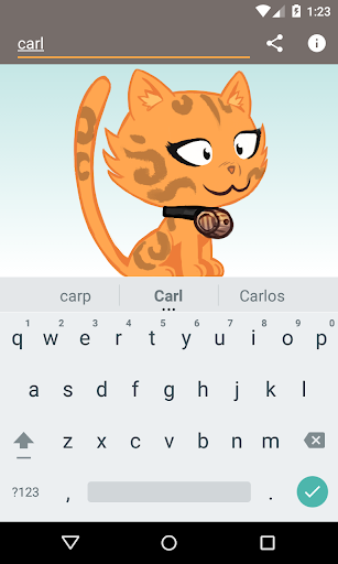 Enter your name (or whatever you want) and let the app automatically generate a new cat for this name. Share the nicest ones with your friends!