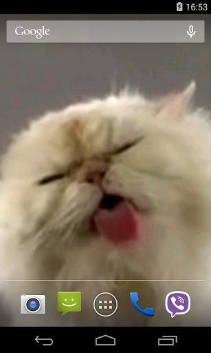 Cat Licks Video live wallpaper is a incredible and funny live wallpaper. Displays an adorable cat, licking the screen of your smartphone.