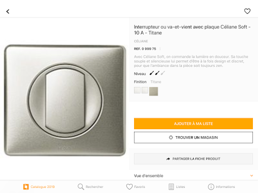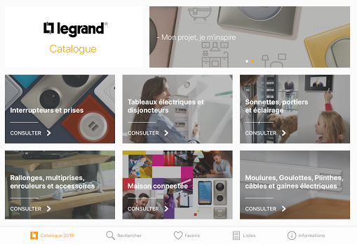 Principales fonctionnalités de l’application catalogue Legrand pour les consommateurs :