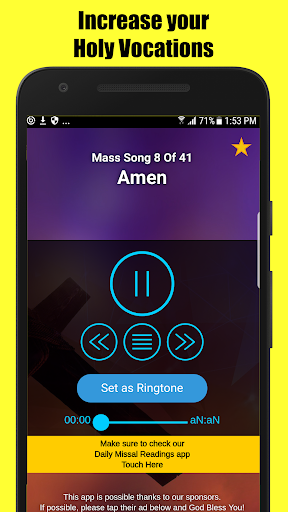 You can set easily ANY of these Catholic Mass Songs as Ringtones in your Android Device.