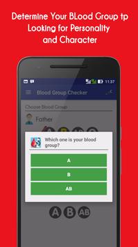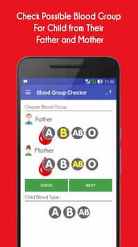 With this application you can check the blood group, first time select your/their Father and Mother. And then application will show possible blood group for their children.