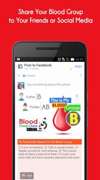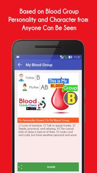 After determine your blood group, you can show your personality based on your blood group, and next you can share it to your friends or to social media.