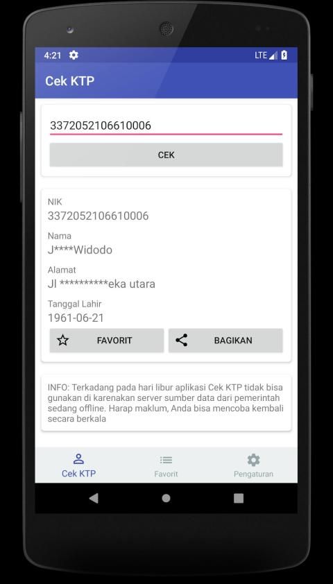 Tidak ada fakta yang meragukan bahwa 20,000+ Pengguna mendownload Cek KTP/ Identitas Penduduk (NIK) versi terbaru di 9Apps secara gratis! Meskipun pada awalnya, kamu mungkin tidak mengetahuinya. Aplikasi HOT ini di rilis tanggal 2019-01-22. Aplikasi baru telah di rilis, anda dapat mendownloadnya dan berbagi dengan teman anda!