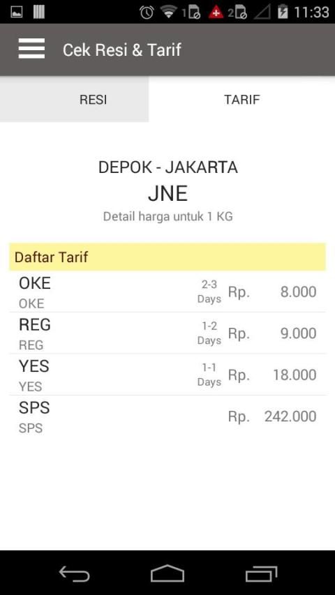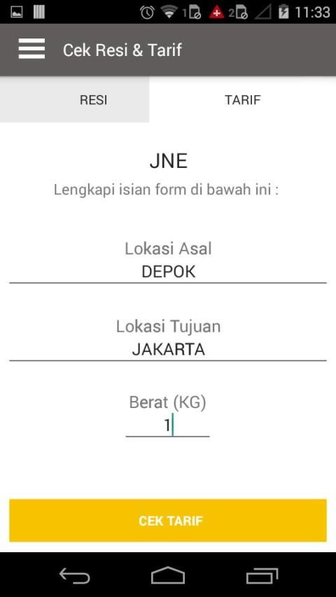 Aplikasi ini menggunakan data pihak ketiga (ekspedisi), karena itu boleh jadi secara temporer cek resi dan tarif untuk tidak bisa dilakukan apabila terjadi gangguan di pihak ekspedisi.