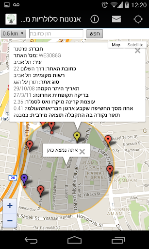 Application which shows around the user's location or around specific address IN ISRAEL ONLY ! cell tower layout nearby radius distance from the user wishes