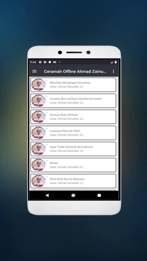 Lecture Offline Ahmad Zainuddin, LC. is a free application that has simple features that are easy to use by anyone. This application is designed for Android phones & Tablets. This application is 100% offline, no need to worry about internet connection because this application can be played at any time.