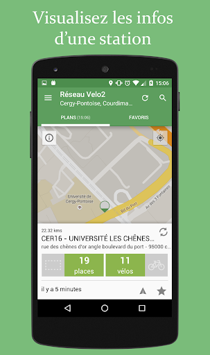 Cergy Velo2 is a tool allowing you to view the status of bike stations Velo2 networks, of Cergy-Pontoise and suburbs.