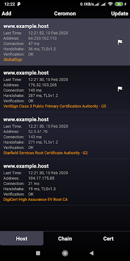 Certificate monitor allows you to view information about host certificates and track changes. The host certificate may be re-issued officially or re-signed by a third party and you will be notified.