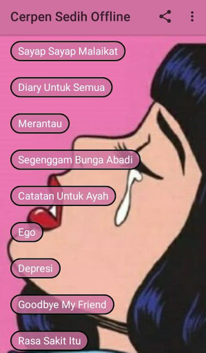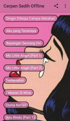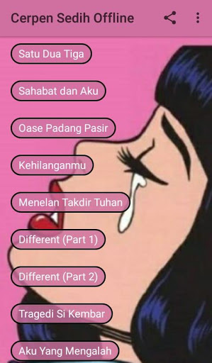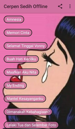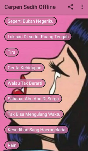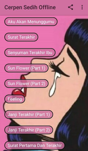 Triste hors ligne sous la forme d'une application basée sur Android avec le nombre d'histoires courtes hors ligne qui y figurant allant de 400 courtes histoires pouvant être appréciées dans le temps libre 24h / 24 7 jours sur 700 Jours par an sans prélèvements ou coûts cachés, de sorte que, avec ces autant d'autres qui deviennent heureux et heureux en raison d'une politique comme celle-ci. Alors n'attendez pas longtemps, installez-le immédiatement et profitez d'une variété de courtes histoires qui vous rendront heureux et comme une variété de choix pouvant être choisis sans des choses cachées.