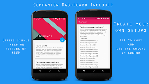 Chameleon is now capable of functioning independently. There are two built-in themes provided. You can also create your own themes using Kustom Live Wallpaper.