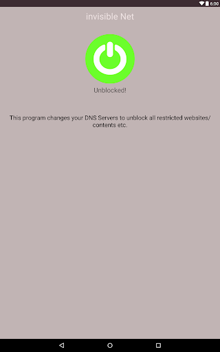 This is a simple DNS changer to unblock all restricted websites/contents and etc. It changes your DNS servers. It does not decrease your connection speed unlike free vpn services.