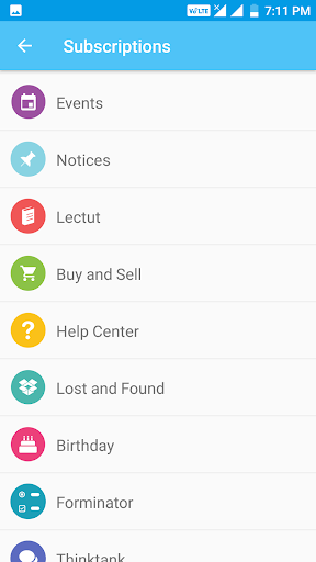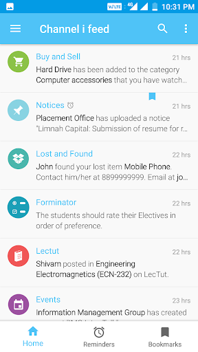 Channel i Notif i keeps you in sync with the latest happenings in the campus. Be it a new notice from the administration or a freshly uploaded tutorial, you can rest assured that Notif i will inform you of the same (only if you subscribe to updates, that is).