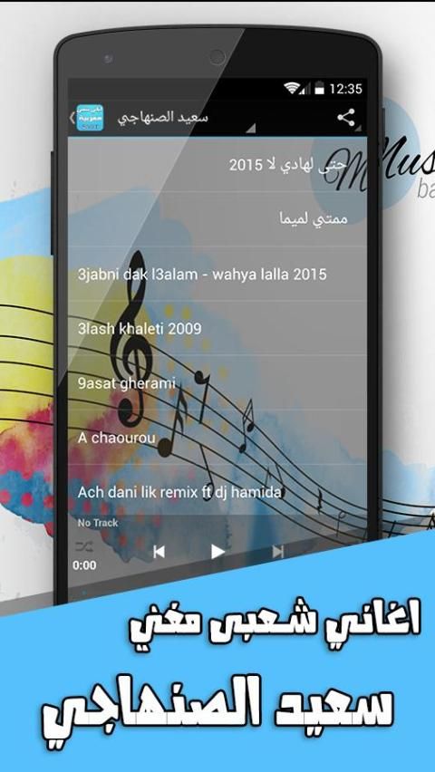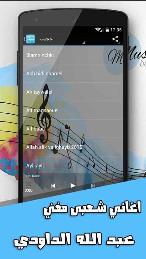 Application peoples of Music Morocco in 2016 on the set of songs popular Moroccan new for 2016, and the musical entertainment of Morocco, of mp3 songs mirth contain and Top mirth and Gnawa and Mlhon Moroccan and Nass El Ghiwane and rap Moroccan and Ray Moroccan, the song popular, as well as many of the masterpieces of music such as Indian music, sad music, Arab music, Turkish music, children's music, Moroccan music, music weddings, Wedding Music, Popular Music