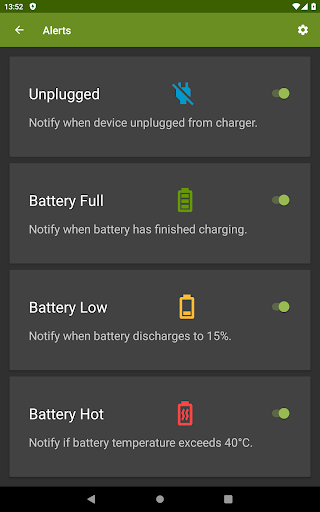 ☑ Alert you if your battery is running hot (choose temperature in Settings). [Pro version]