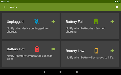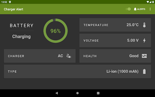 Charger Alert also helps protect your battery by alerting you when your battery is low, overheating or has finished charging so you can unplug it.