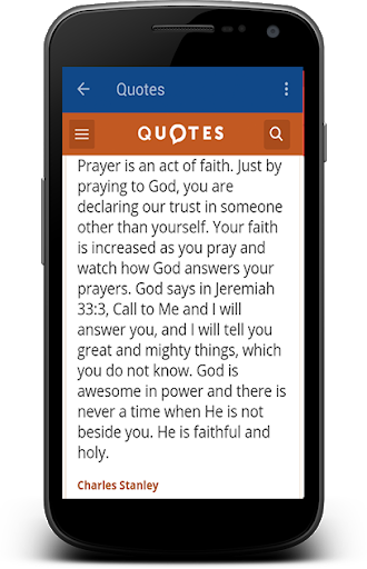 Charles Stanley Sermons & Quotes Free app will guide you in a closer walk with God, by providing, each day, sermons thoughts upon rising and retiring. Get yourself upbeat and motivated from the word of God daily by having this wonderful app. Share with friends via Facebook and Twitter your thoughts and commentary, watch videos with his sermons and much more. We are sure that this app will help everyone to cultivate a deeper relationship with God and serve as a daily launchpad into His Word.