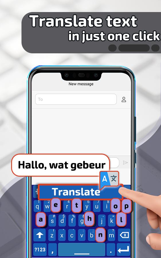 Chat translator keyboard helps to solve the problem of not knowing the language. Text Translator keyboard has the unique automatic chat translator function. Chat Translator will use your phone's Internet connection (Mobile data or Wifi) to send SMS messages to friends, family or business partners who cannot speak your native language. Text translator app helps you to overcome language barriers and comes with a live chat translator keyboard for you.