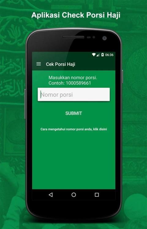Aplikasi ini dibuat agar memudahkan calon jemaah untuk mengakses informasi porsi haji dan tahun keberangkatan yang disediakan oleh Kementrian Agama RI. Aplikasi ini membutuhkan koneksi data untuk dapat memberikan informasi mengenai tahun kebarangkatan, porsi dan informasi lainnya. Semoga bisa memberi manfaat untuk Calon Jemaah Haji di Indonesia.
