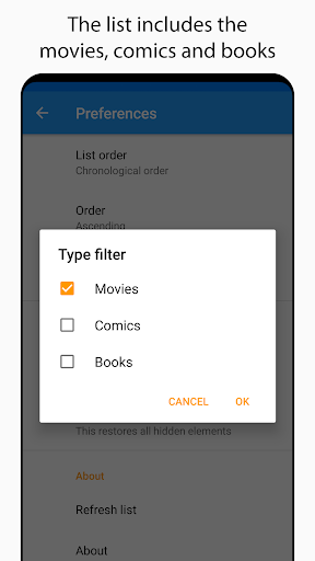 The list includes the movies, comics and books.