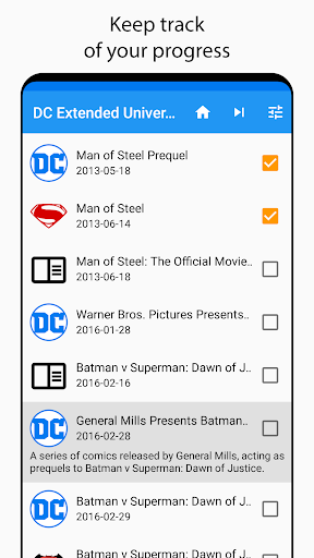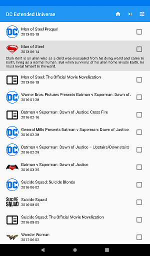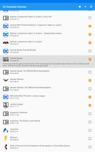 Checklist app for the DC Extended Universe including the movies, comics and books.