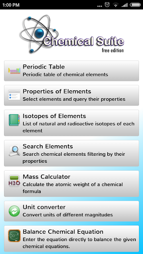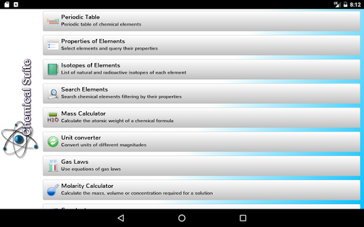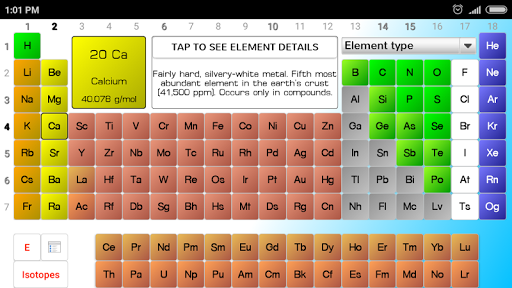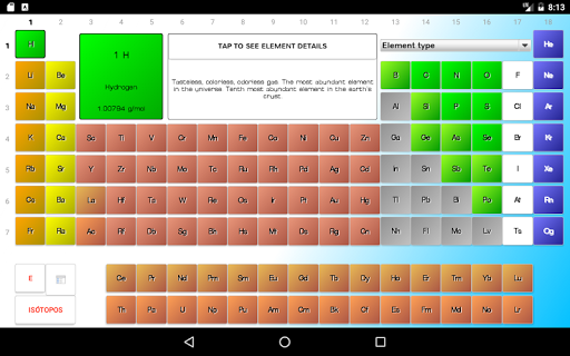- Detail of elements, more than 30 properties for each element, including general and physical properties, history... and more.