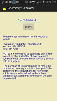 The purpose of this program is to make the process of creating a solution less painful by performing the calculations for how much solute needs to be
